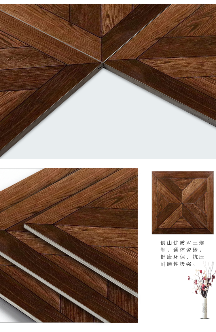 金曼古仿古地磚,采用國際先進的超大型壓機自動成型,經世界一流的滾筒印花和高溫煅燒而成,通過仿石、仿巖、仿木、仿布、仿金屬等多種表現方式,產品花色圖案新穎時尚,領先國際潮流,具有超耐磨、防滑、防污等高性能指標。