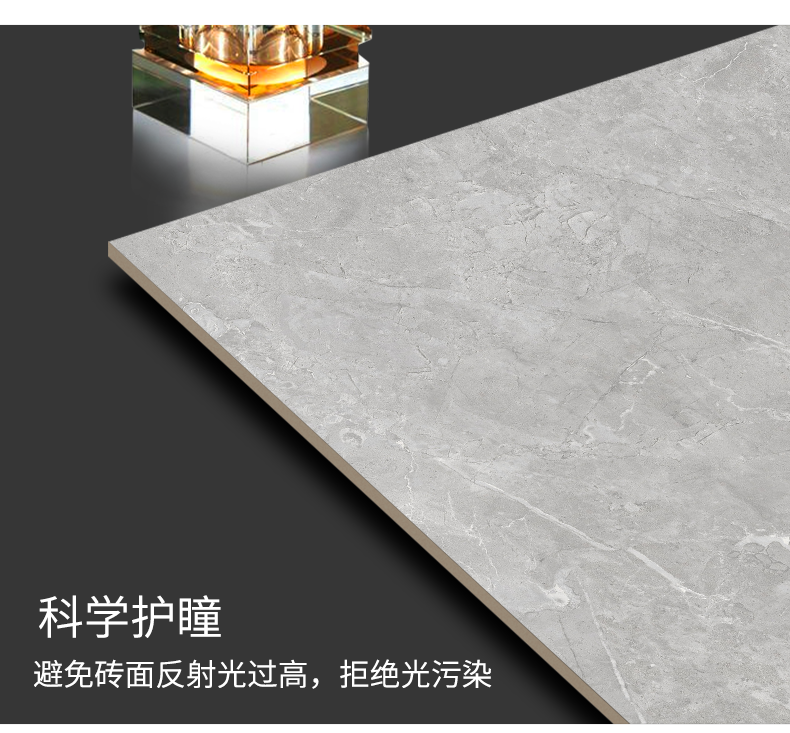 柔光瓷磚是磚面反射介于強光與弱光之間的一類瓷磚,其結合亮光類瓷磚的高調明艷裝飾和啞光類瓷磚的低調內斂搭配效果,通過動態柔光蠟拋技術,降低產品反光率,從而達到人體舒適的視覺感受以及無光污染的空間裝飾效果。優點:1.視覺舒適,無光污染 2.堅固耐磨,不易刮花.