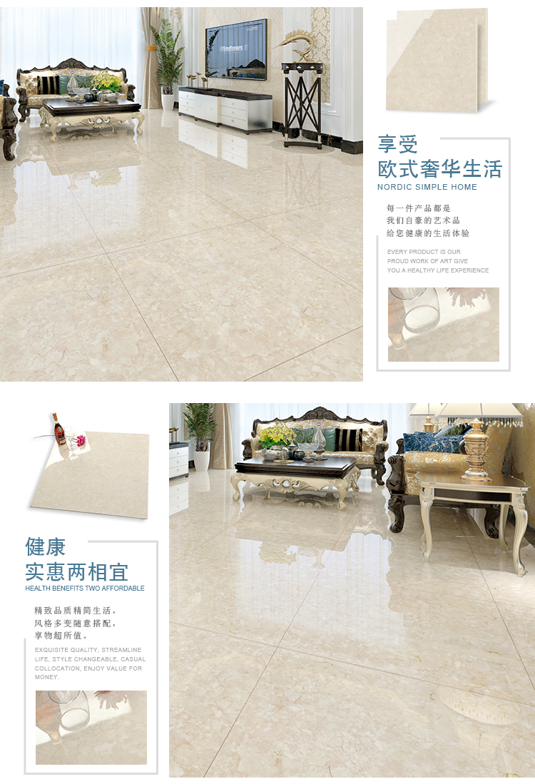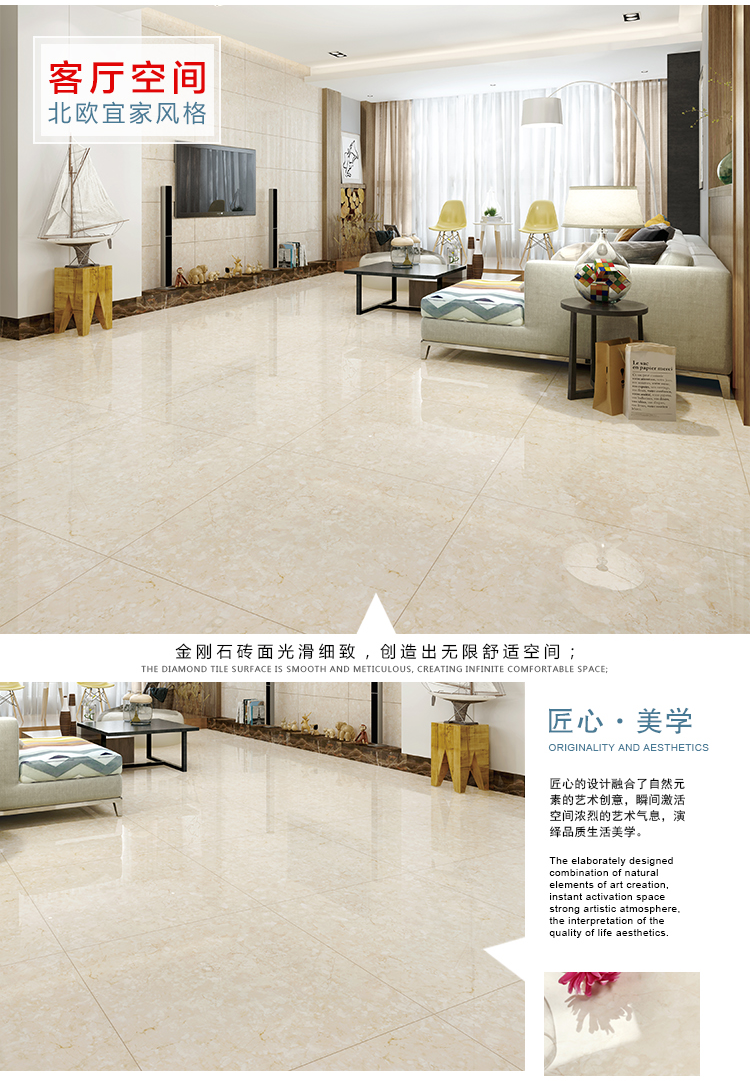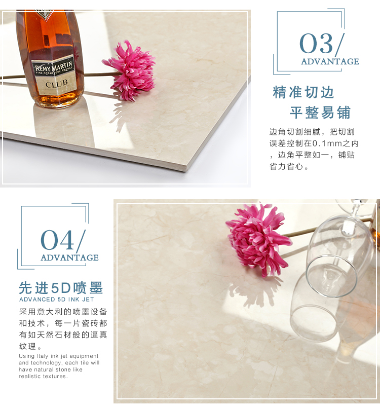 金曼古瓷磚廠家特價金剛石因高品質而得名,是一款極具天然石材效果和微晶石質感的仿石材瓷磚,它不但在價格、環保、耐用和清潔上極具優勢,在質感、規格、花色、重量等指標上,金剛石都遠遠勝于石材、拋光磚。相比其他種類的產品,它最大的特點可以用“高亮度、高耐磨、高平整、高逼真、高清晰、高環保”。