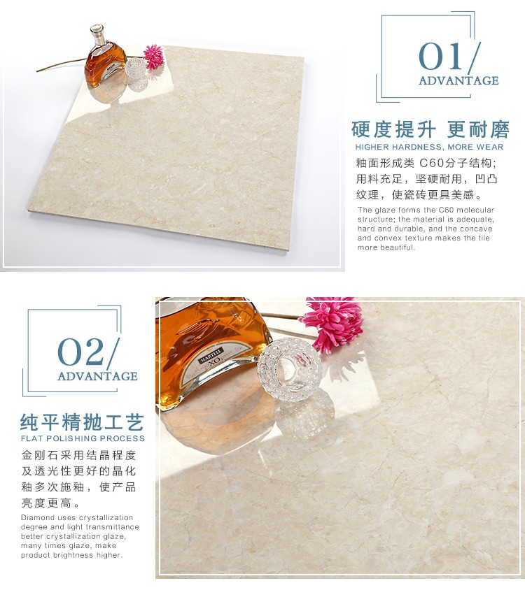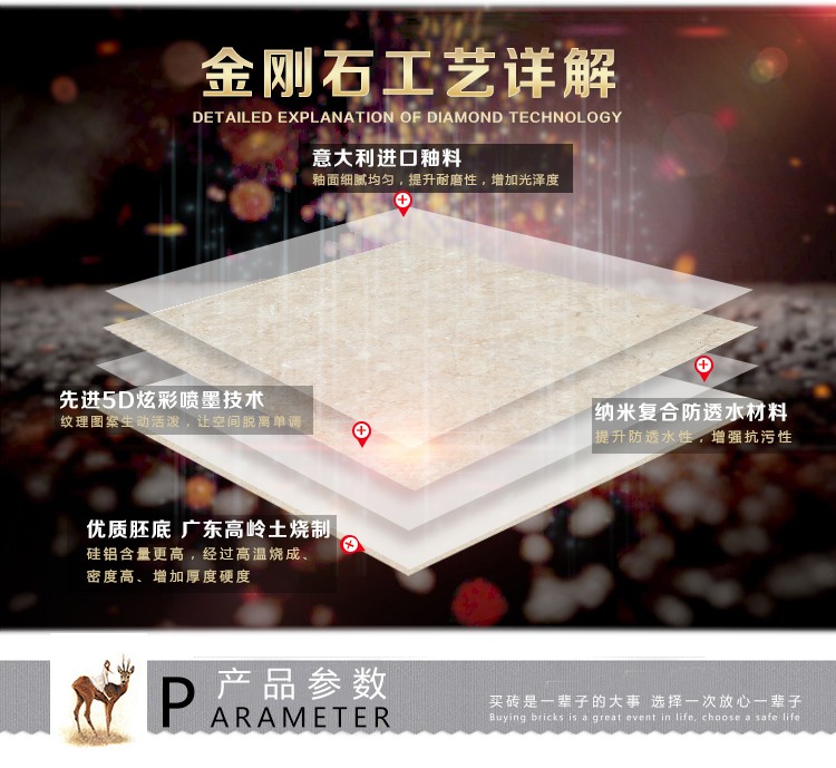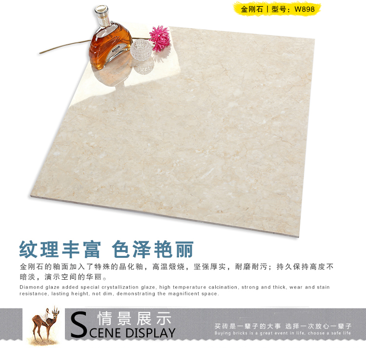 金曼古瓷磚廠家特價(jià)金剛石因高品質(zhì)而得名,是一款極具天然石材效果和微晶石質(zhì)感的仿石材瓷磚,它不但在價(jià)格、環(huán)保、耐用和清潔上極具優(yōu)勢(shì),在質(zhì)感、規(guī)格、花色、重量等指標(biāo)上,金剛石都遠(yuǎn)遠(yuǎn)勝于石材、拋光磚。相比其他種類的產(chǎn)品,它最大的特點(diǎn)可以用“高亮度、高耐磨、高平整、高逼真、高清晰、高環(huán)?!薄?/p>