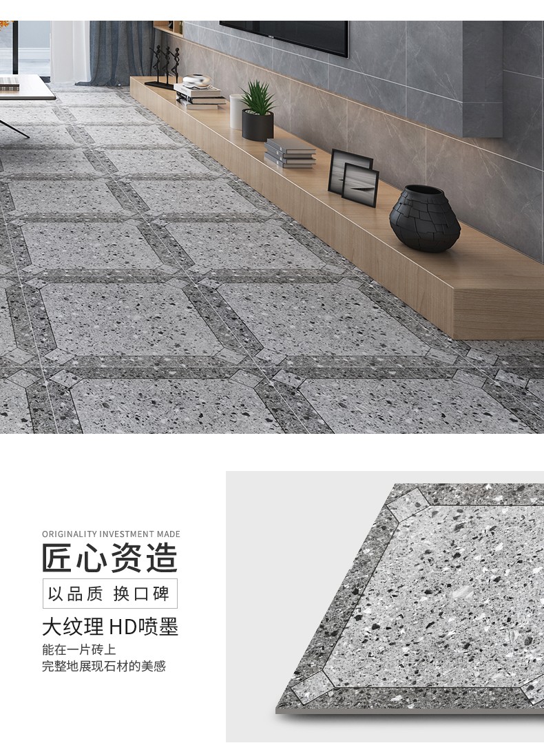 金曼古仿古地磚,采用國際先進的超大型壓機自動成型,經世界一流的滾筒印花和高溫煅燒而成,通過仿石、仿巖、仿木、仿布、仿金屬等多種表現方式,產品花色圖案新穎時尚,領先國際潮流,具有超耐磨、防滑、防污等高性能指標。