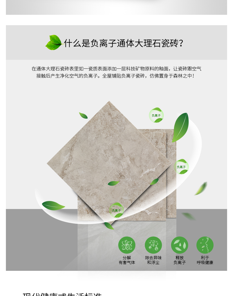 金曼古負(fù)離子瓷磚,能持續(xù)產(chǎn)生負(fù)離子,提高居室內(nèi)空氣負(fù)離子濃度,改善室內(nèi)空氣質(zhì)量,提升人體健康水平。負(fù)離子被稱為空氣維生素,負(fù)離子瓷磚創(chuàng)造安全健康的空間環(huán)境。工程用磚全拋釉地磚、通體大理石瓷磚、金剛石地磚等支持加工定做家裝瓷磚批發(fā)。
