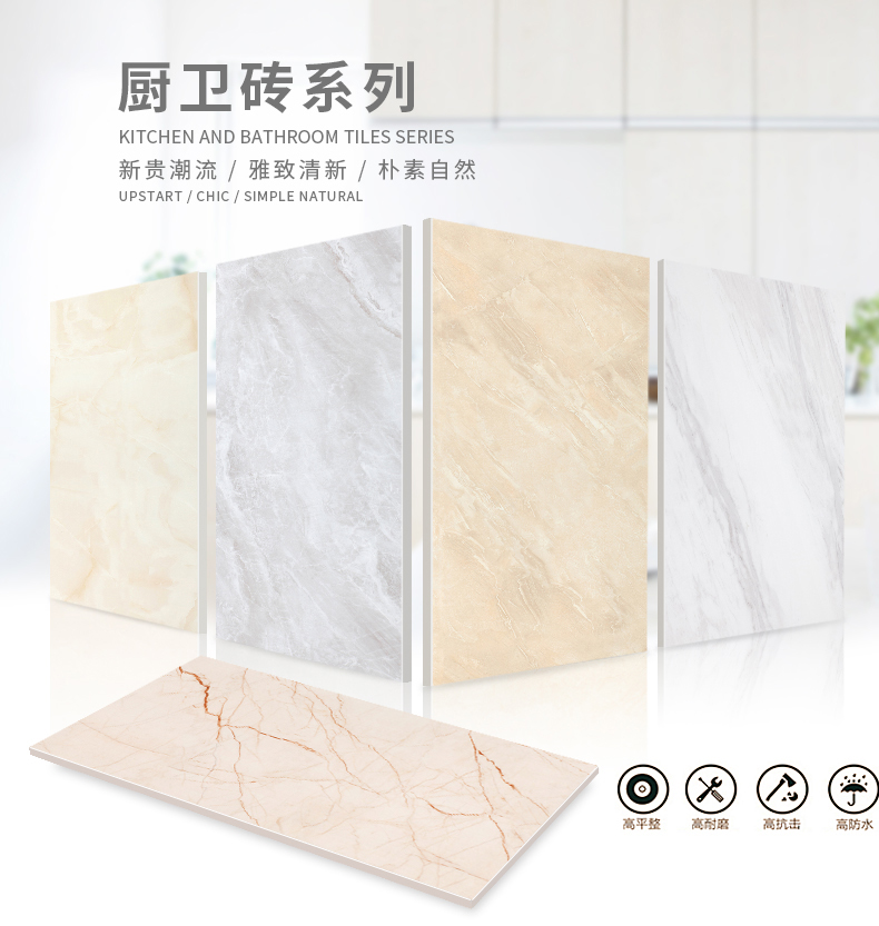 適用于洗手間、廚房、室外陽臺的立面裝飾,是保護墻面免遭水濺的有效途徑。它們不僅用于墻面,用在門窗的邊緣裝飾上,也是一種有趣的裝飾元素。用于踢腳線處的裝飾墻磚,既美觀又保護墻基不易被鞋或桌椅凳腳弄臟。