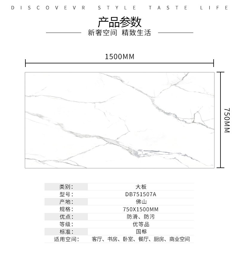 大規(guī)格瓷磚(DB751507A)-工程瓷磚 金曼古大規(guī)格瓷磚引進世界最先進的超大型壓機自動壓制而成,具有超大規(guī)格,超高硬度,超高致密度,超長時間煅燒,超低吸水率,超高光澤度。其磚面紋理流暢自然,效果逼真,適用于大型工程外墻干掛和酒店、商場、各辦公樓大堂等地面裝修