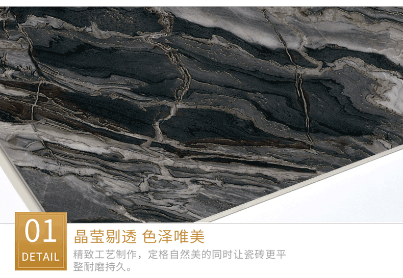 金線金粉 【產品介紹】航天級激光鍍金工藝,鉆石雕刻技術,高溫慢燒,釉層不吸污吸水率低,真空鍍金燒成后再進行真空電鍍工藝,平整如鏡面,精拋細磨,磚面平整光滑細膩光澤度、亮度、硬度較高。立體紋理,釉下彩工藝,三次淋釉增加磚面的立體感。