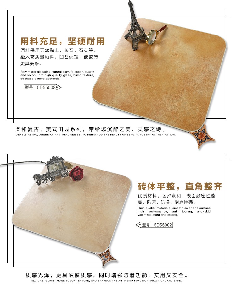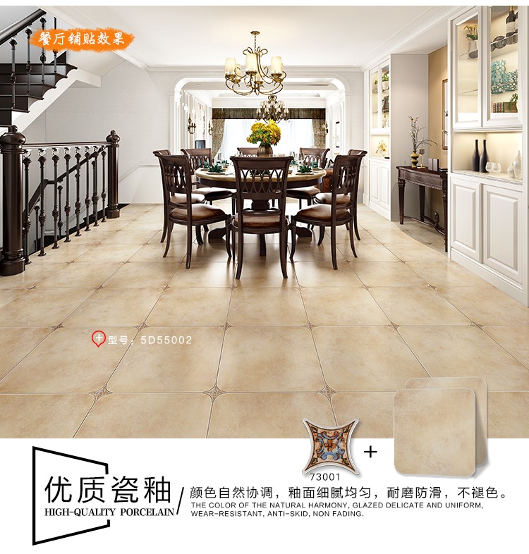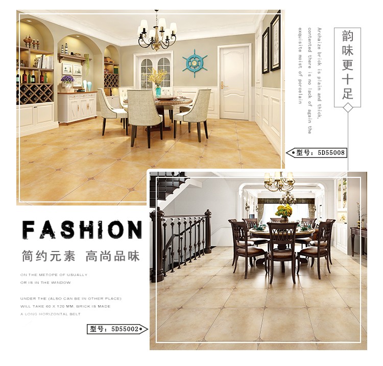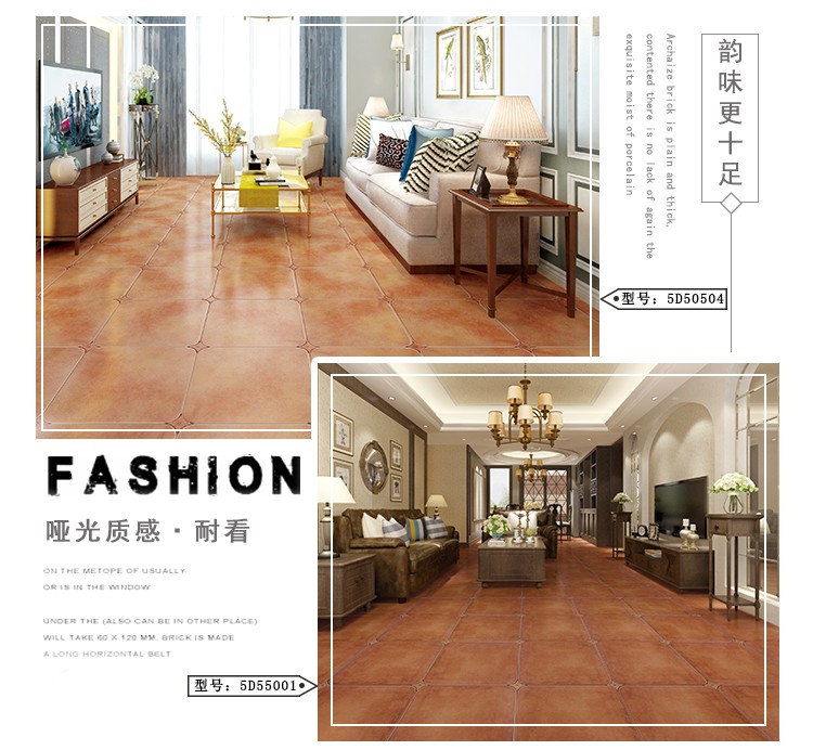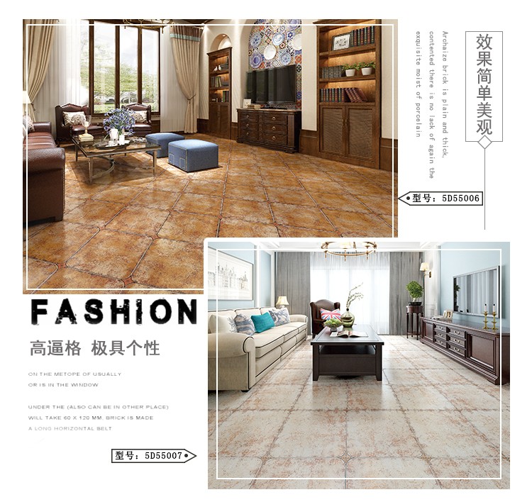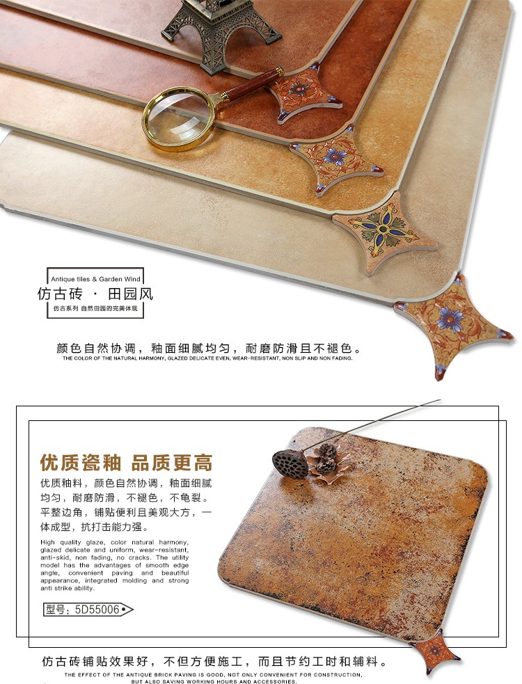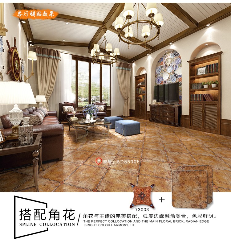 金曼古仿古地磚,采用國際先進的超大型壓機自動成型,經(jīng)世界一流的滾筒印花和高溫煅燒而成,通過仿石、仿巖、仿木、仿布、仿金屬等多種表現(xiàn)方式,產(chǎn)品花色圖案新穎時尚,領(lǐng)先國際潮流,具有超耐磨、防滑、防污等高性能指標。