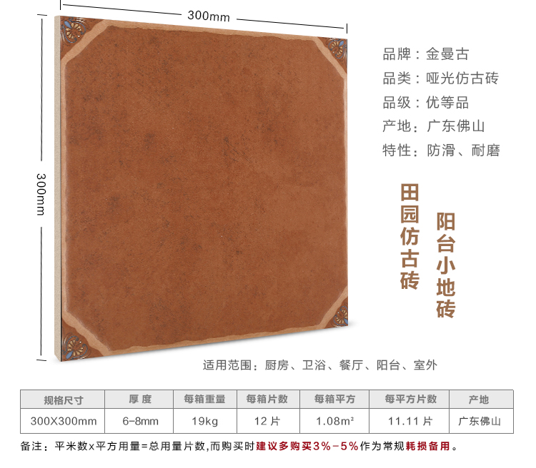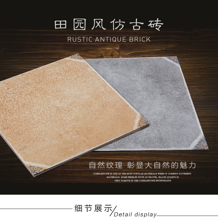 金曼古仿古地磚,采用國際先進(jìn)的超大型壓機自動成型,經(jīng)世界一流的滾筒印花和高溫煅燒而成,通過仿石、仿巖、仿木、仿布、仿金屬等多種表現(xiàn)方式,產(chǎn)品花色圖案新穎時尚,領(lǐng)先國際潮流,具有超耐磨、防滑、防污等高性能指標(biāo)。